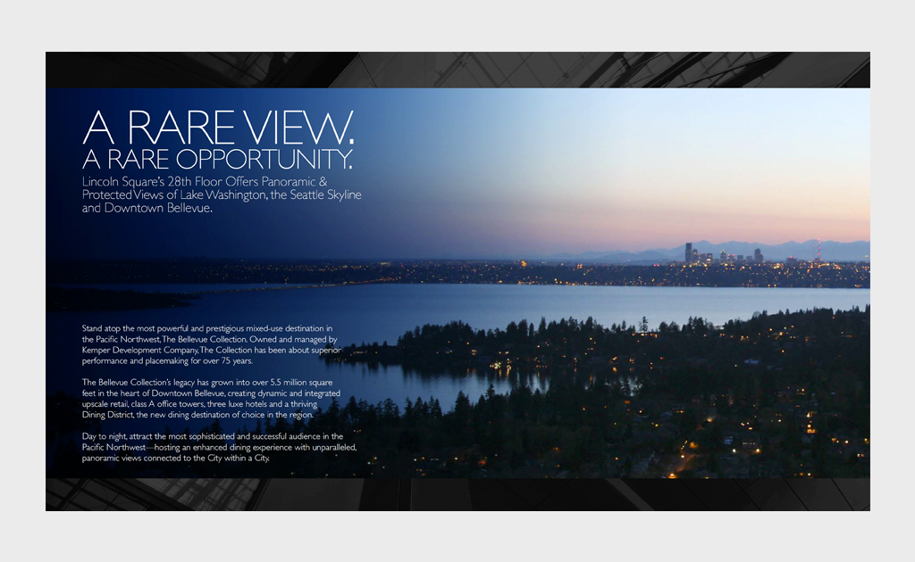 Brand Positioning / Brand Architecture Development, Visual Identity for all Collection (property) Brands, Campaign Strategies — All media, Collection-wide and Niche Projects, Creative — Design for all media, Custom Photography & Video, B2B Leasing Marketing, Programming, Environmental Design, Wayfinding
